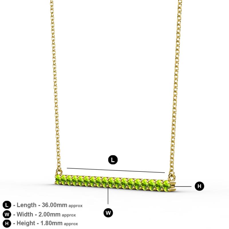 Round Peridot 5/8 ctw Womens Horizontal Bar Pendant Necklace 14K Yellow Gold.Included 16 Inches 14K Yellow Gold Chain More Details ...