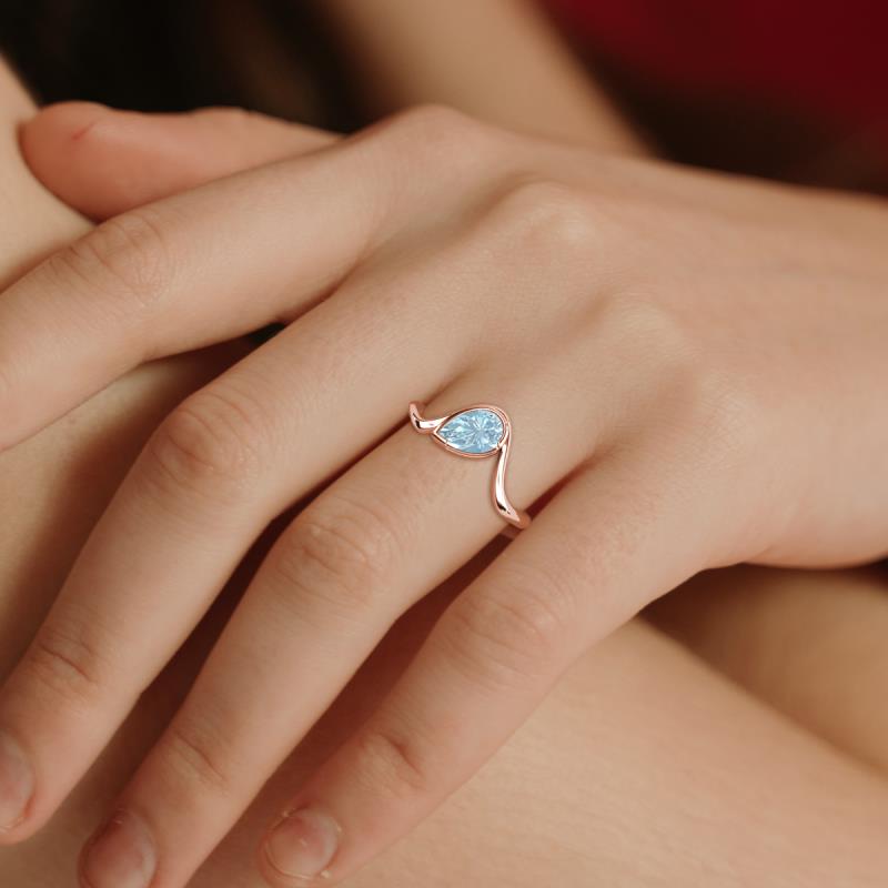 0.95 ct Pear Shape Aquamarine (8 x 6 mm) Women Wave Solitaire Engagement Ring in 10K Rose Gold More Details ...