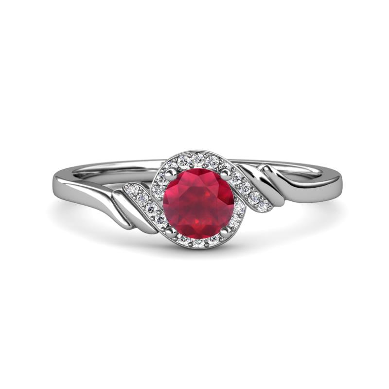 1/8 ctw Round Ruby and Diamond Bypass Womens Engagement Ring Platinum More Details ...
