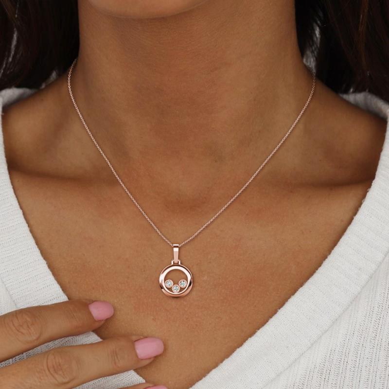 Lab Grown Diamond (2.00 mm) Open Circle Women Three Stone Pendant Necklace in 14K Rose Gold. More Details ...