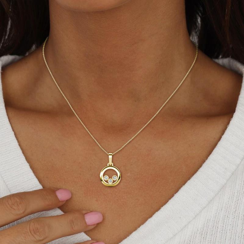 Celebrate life’s special moments with Open Circle Pendant Necklace. Featuring 3 bezel-set round Lab Grown Diamond in a design, it symbolizes the past, present, and future. Crafted in premium 14K Yellow Gold, it’s a timeless treasure you’ll cherish forever.