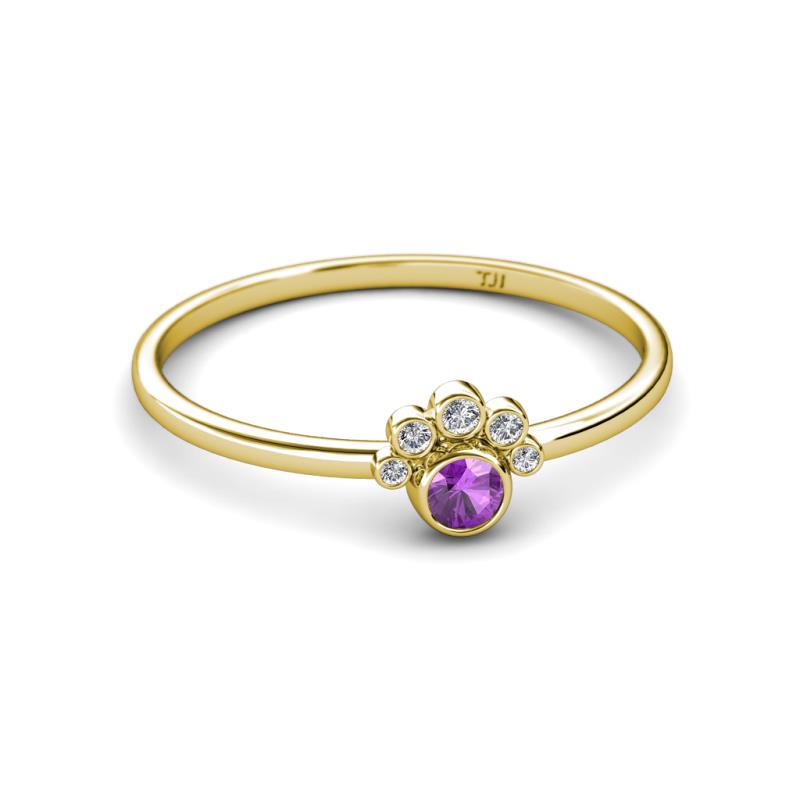 Round Amethyst and Diamond Womens Paw Print Promise Ring 0.13 ctw 18K Yellow Gold More Details ...