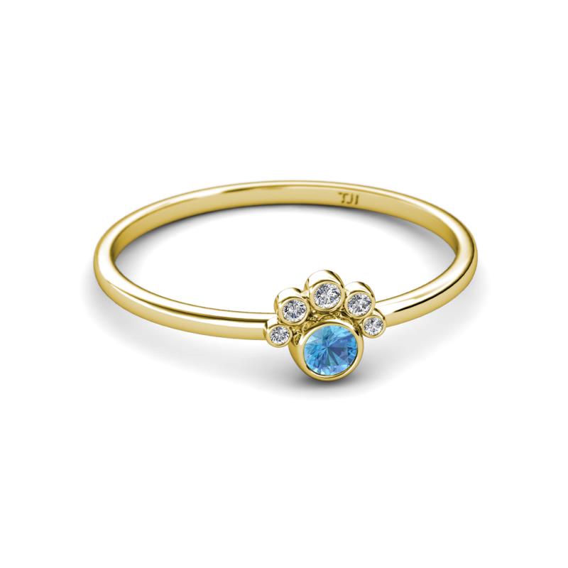 Round Blue Topaz and Diamond Womens Paw Print Promise Ring 0.14 ctw 14K Yellow Gold More Details ...
