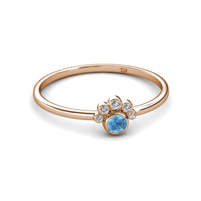 Round Blue Topaz and Diamond Womens Paw Print Promise Ring 0.14 ctw 14K Rose Gold More Details ...
