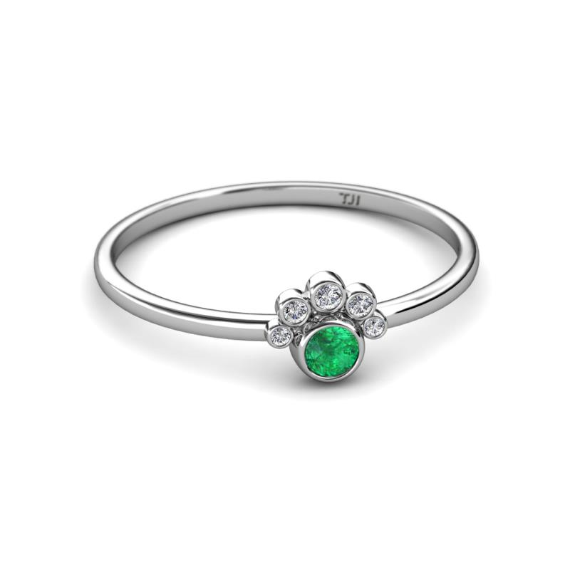 Round Emerald and Diamond Womens Paw Print Promise Ring 0.13 ctw 18K White Gold More Details ...