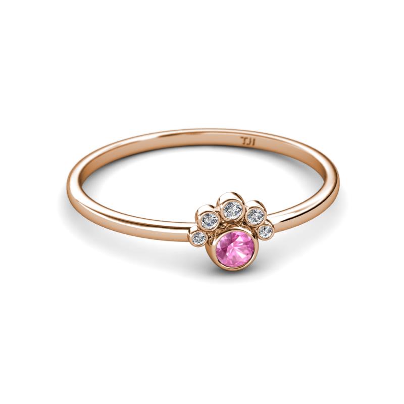 Round Pink Sapphire and Diamond Womens Paw Print Promise Ring 0.16 ctw 14K Rose Gold More Details ...