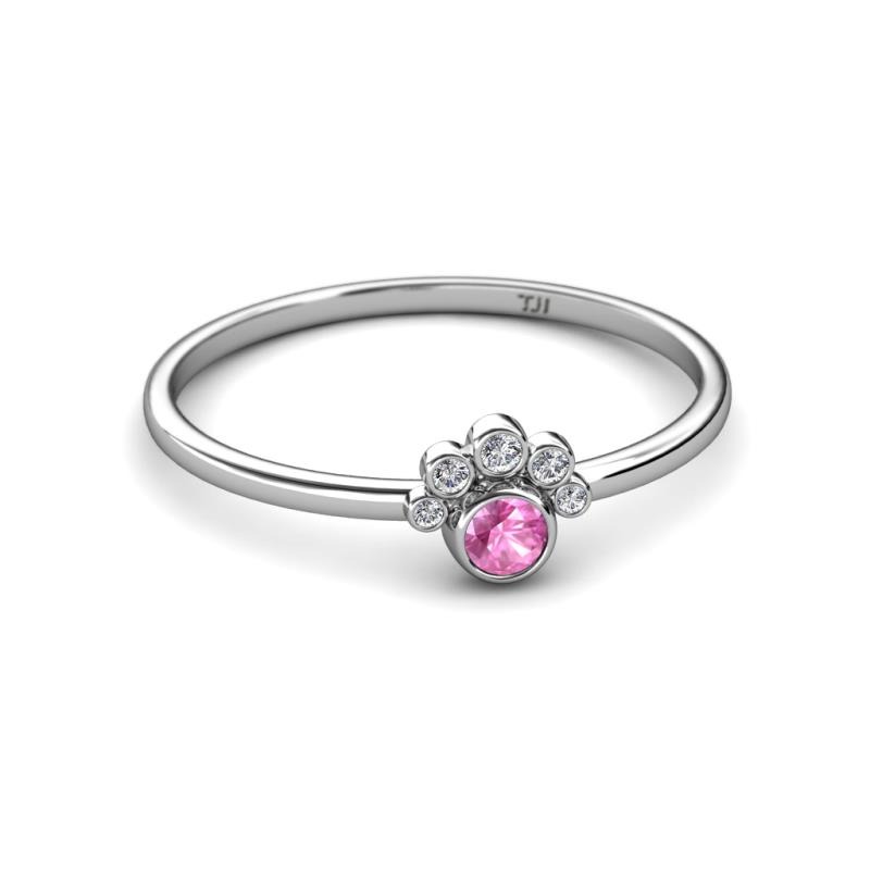 Round Pink Sapphire and Diamond Womens Paw Print Promise Ring 0.16 ctw 18K White Gold More Details ...