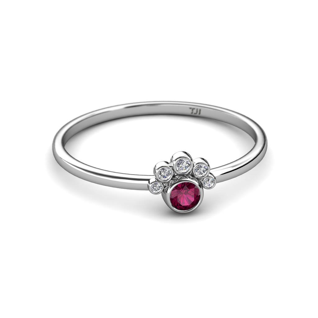 Round Rhodolite Garnet and Diamond Womens Paw Print Promise Ring 0.17 ctw 18K White Gold More Details ...