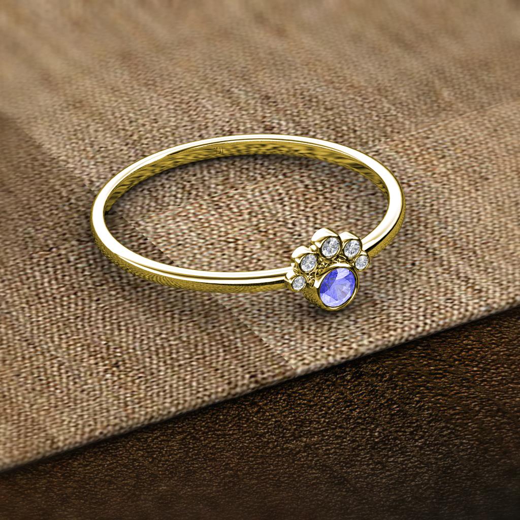 Round Tanzanite and Diamond Womens Paw Print Promise Ring 0.14 ctw 18K Yellow Gold More Details ...