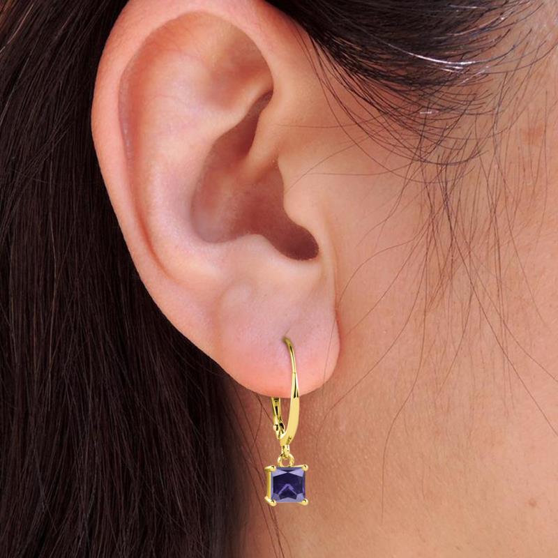 Princess Cut (5.5 mm) Iolite Four Prong Womens Solitaire Drop and Dangle Earrings 1 3/4 ctw 14K Yellow Gold More Details ...