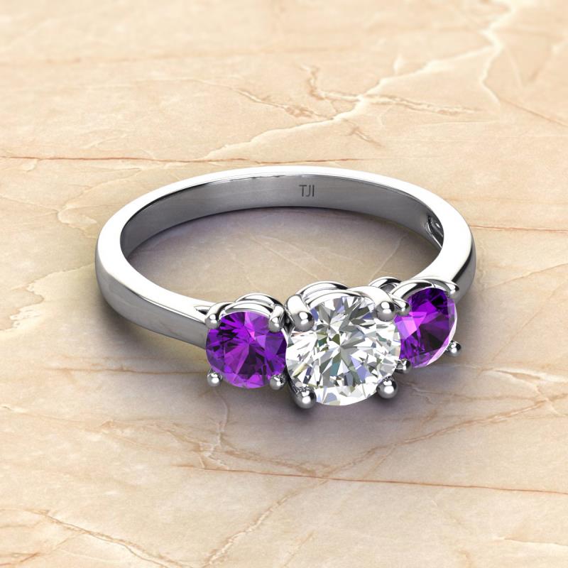 GIA Certified Round Natural Diamond and Amethyst 2.05 ctw Women Three Stone Engagement Ring 14K White Gold More Details ...