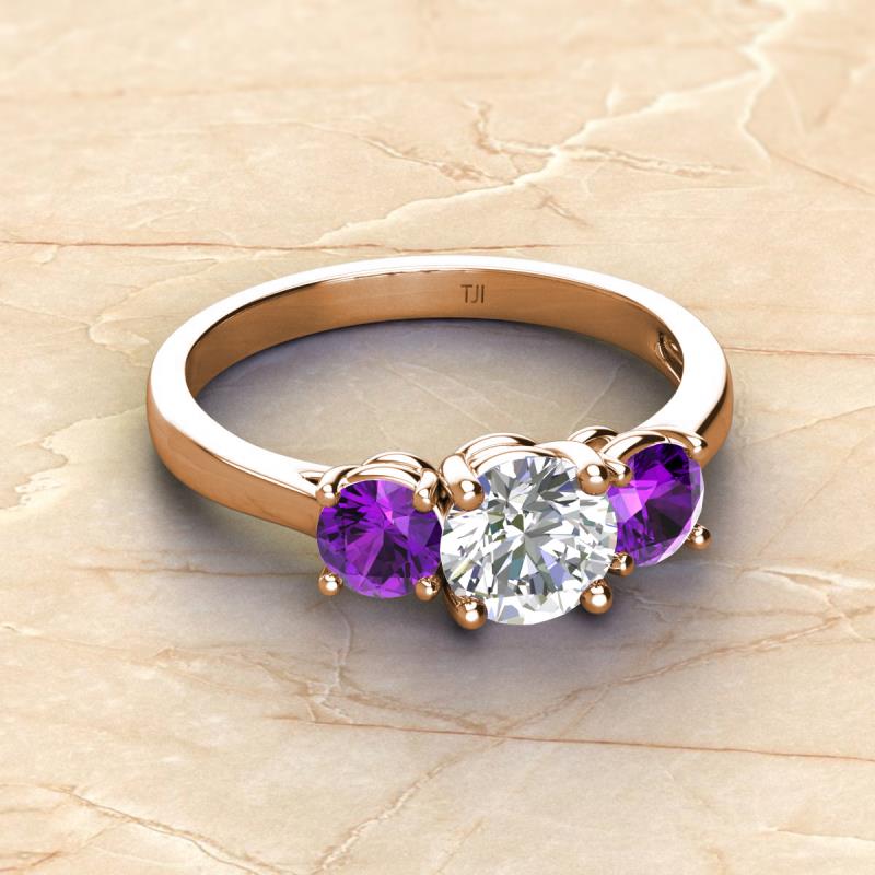 GIA Certified Round Natural Diamond and Amethyst 2.05 ctw Women Three Stone Engagement Ring 14K Rose Gold More Details ...