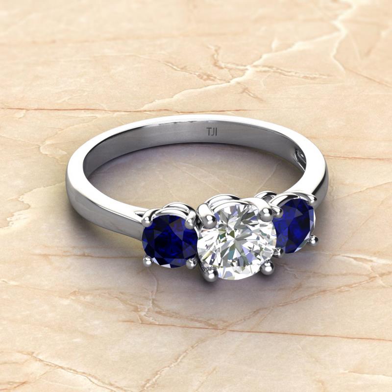 GIA Certified Round Natural Diamond and Blue Sapphire 2.65 ctw Women Three Stone Engagement Ring Platinum More Details ...