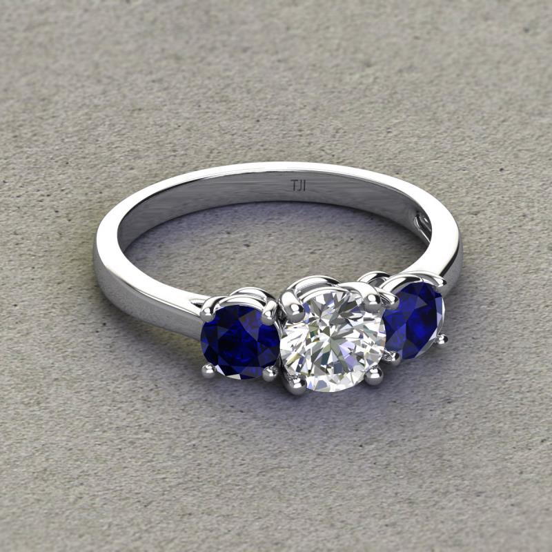 GIA Certified Round Natural Diamond and Blue Sapphire 2.40 ctw Women Three Stone Engagement Ring Platinum More Details ...