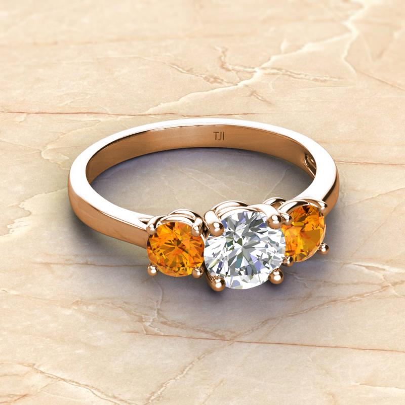 GIA Certified Round Natural Diamond and Citrine 2.05 ctw Women Three Stone Engagement Ring 18K Rose Gold More Details ...