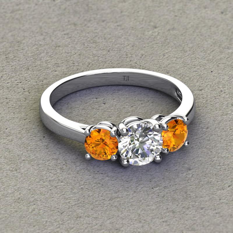 GIA Certified Round Natural Diamond and Citrine 1.80 ctw Women Three Stone Engagement Ring 18K White Gold More Details ...