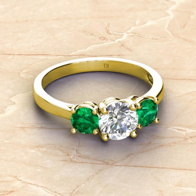 GIA Certified Round Natural Diamond and Emerald 2.05 ctw Women Three Stone Engagement Ring 18K Yellow Gold More Details ...