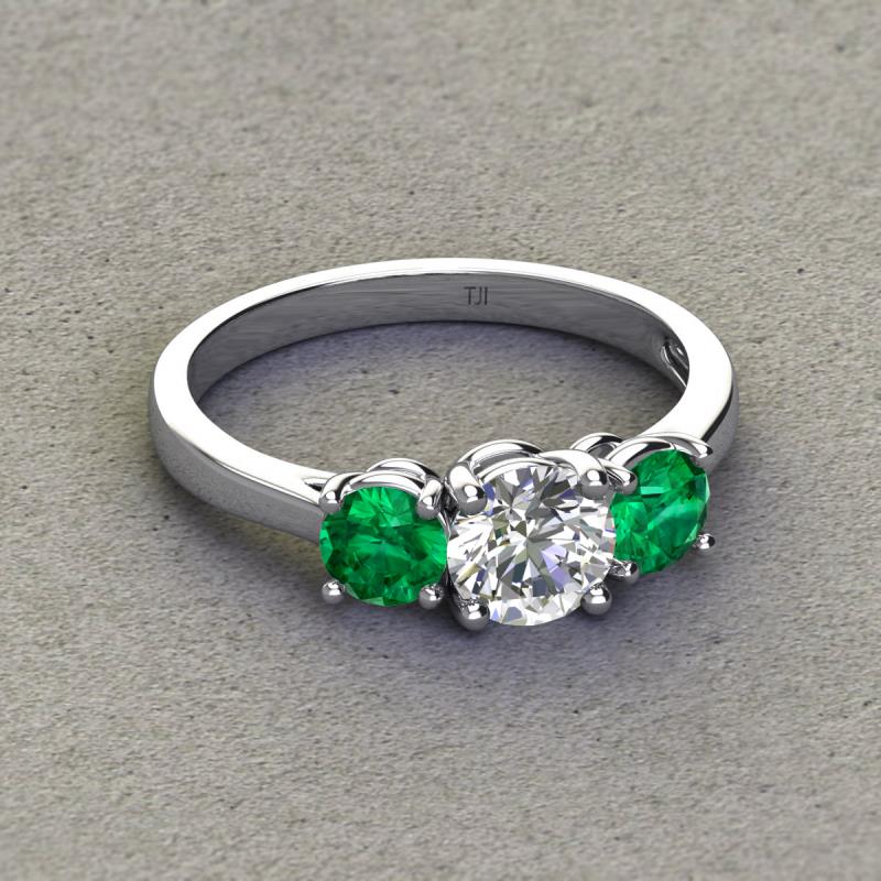 GIA Certified Round Natural Diamond and Emerald 1.80 ctw Women Three Stone Engagement Ring Platinum More Details ...