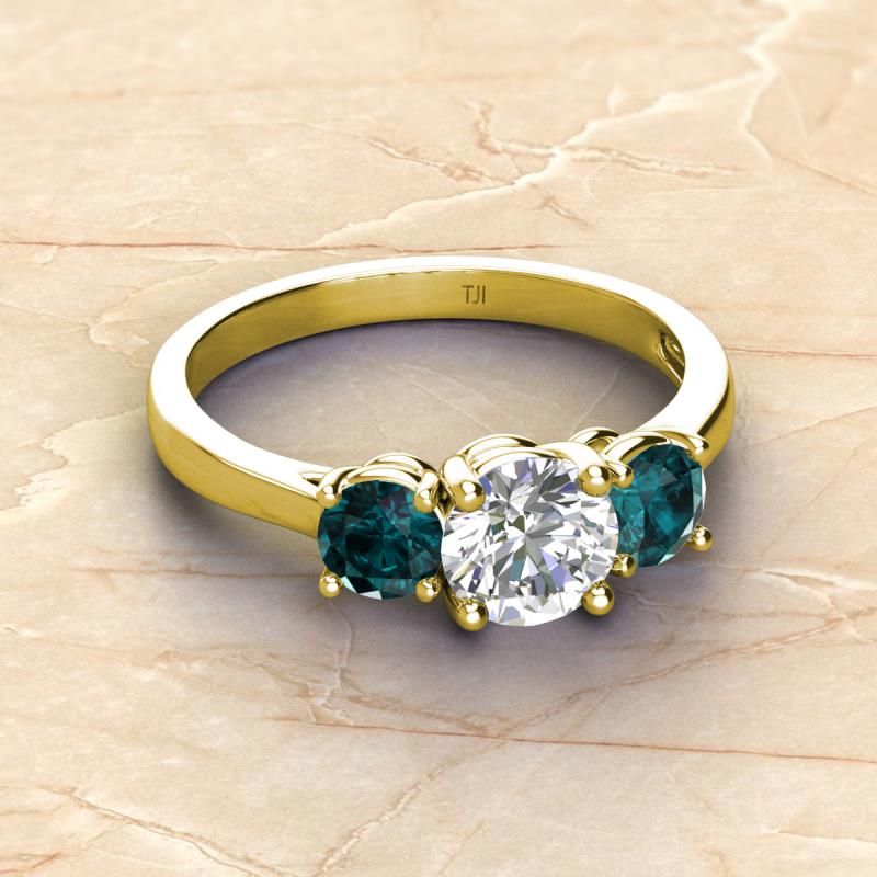 GIA Certified Round Natural Diamond and London Blue Topaz 2.25 ctw Women Three Stone Engagement Ring 14K Yellow Gold More Details ...