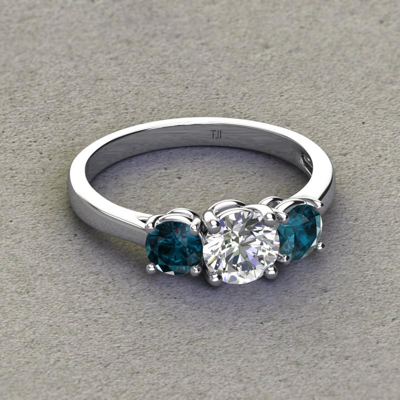 GIA Certified Round Natural Diamond and London Blue Topaz 2.00 ctw Women Three Stone Engagement Ring 14K White Gold More Details ...