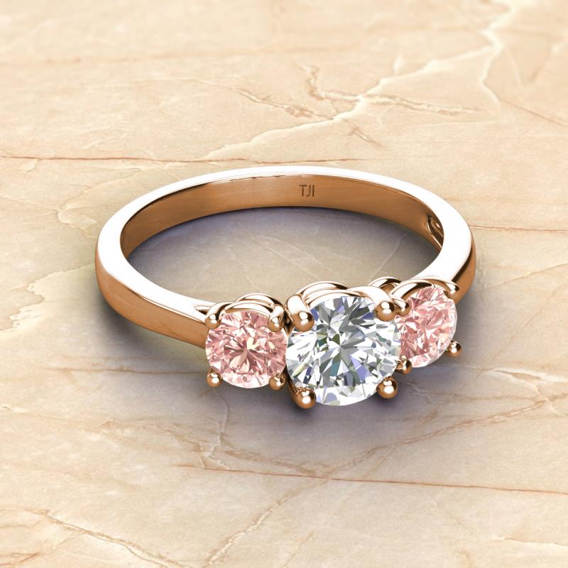 GIA Certified Round Natural Diamond and Morganite 2.21 ctw Women Three Stone Engagement Ring 18K Rose Gold More Details ...