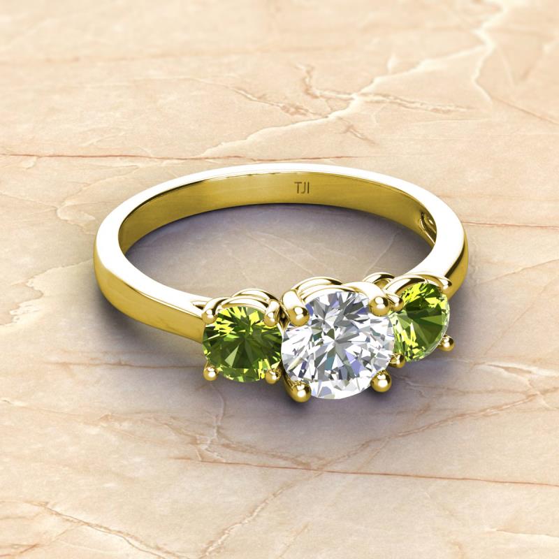 GIA Certified Round Natural Diamond and Peridot 2.25 ctw Women Three Stone Engagement Ring 18K Yellow Gold More Details ...