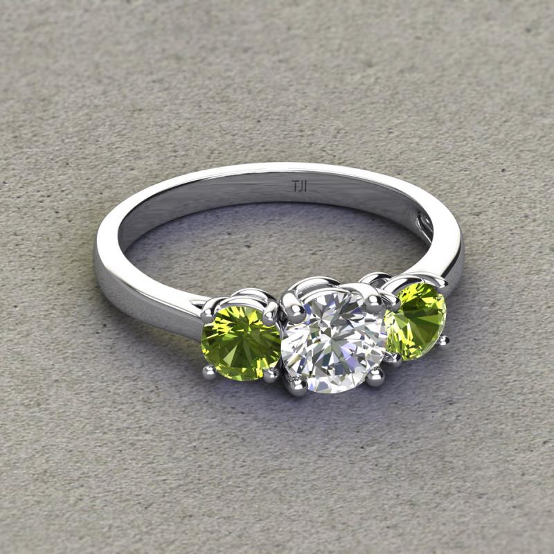 GIA Certified Round Natural Diamond and Peridot 2.00 ctw Women Three Stone Engagement Ring 14K White Gold More Details ...