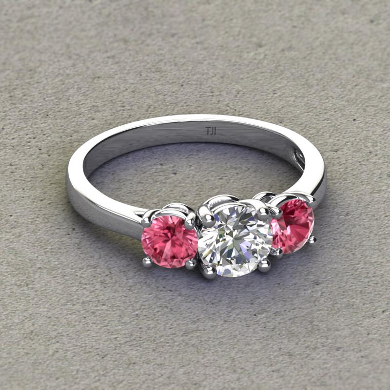 GIA Certified Round Natural Diamond and Pink Tourmaline 1.80 ctw Women Three Stone Engagement Ring 14K White Gold More Details ...