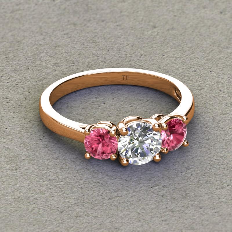 GIA Certified Round Natural Diamond and Pink Tourmaline 1.80 ctw Women Three Stone Engagement Ring 14K Rose Gold More Details ...