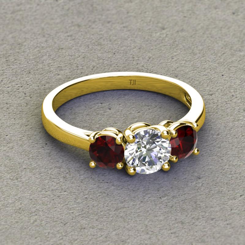 GIA Certified Round Natural Diamond and Red Garnet 2.26 ctw Women Three Stone Engagement Ring 14K Yellow Gold More Details ...