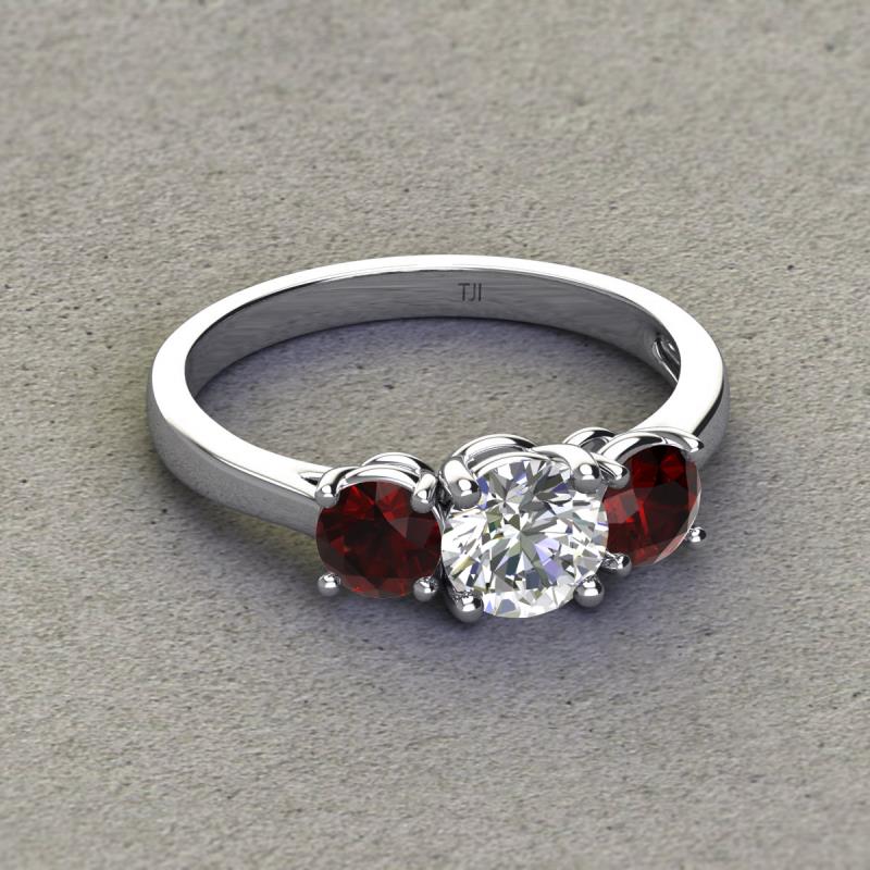 GIA Certified Round Natural Diamond and Red Garnet 2.26 ctw Women Three Stone Engagement Ring Platinum More Details ...