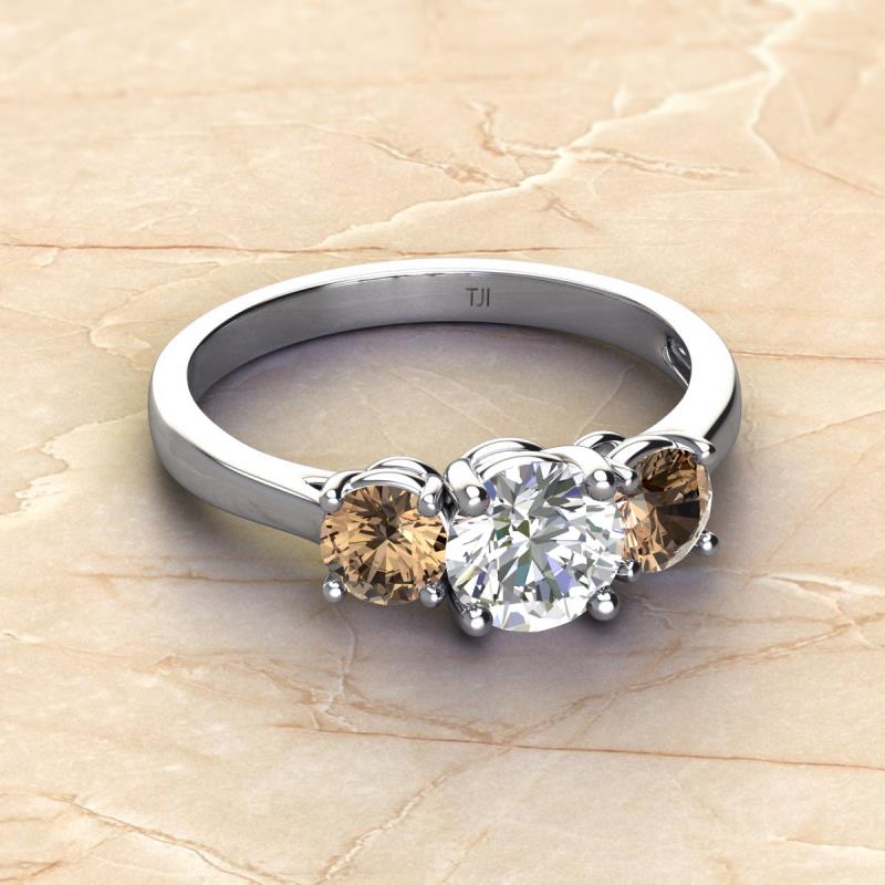 GIA Certified Round Natural Diamond and Smoky Quartz 2.20 ctw Women Three Stone Engagement Ring 14K White Gold More Details ...