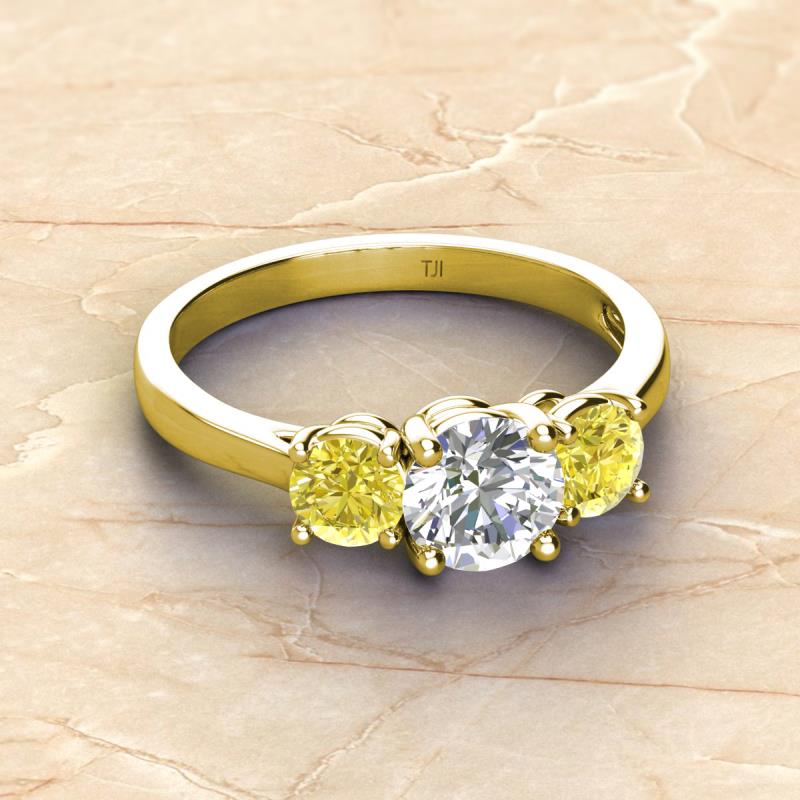 GIA Certified Round Natural Diamond and Yellow Diamond 2.25 ctw Women Three Stone Engagement Ring 14K Yellow Gold More Details ...