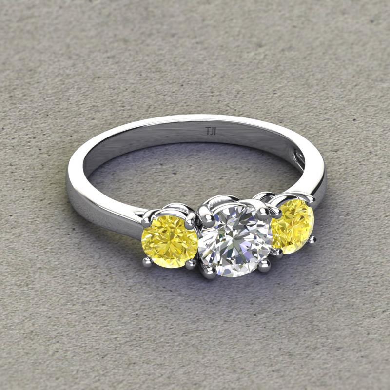 GIA Certified Round Natural Diamond and Yellow Diamond 2.00 ctw Women Three Stone Engagement Ring 14K White Gold More Details ...