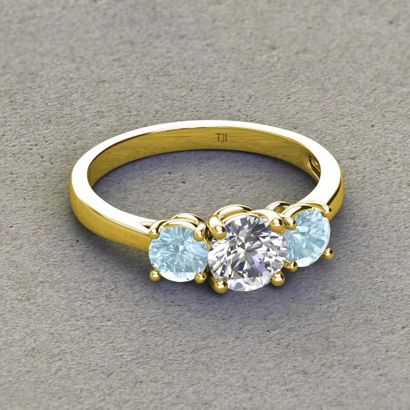 IGI Certified Round Lab Grown Diamond and Aquamarine 1.80 ctw Women Three Stone Engagement Ring 14K Yellow Gold More Details ...