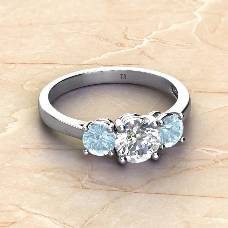 IGI Certified Round Lab Grown Diamond and Aquamarine 2.10 ctw Women Three Stone Engagement Ring Platinum More Details ...