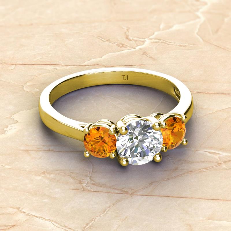 IGI Certified Round Lab Grown Diamond and Citrine 2.10 ctw Women Three Stone Engagement Ring 14K Yellow Gold More Details ...