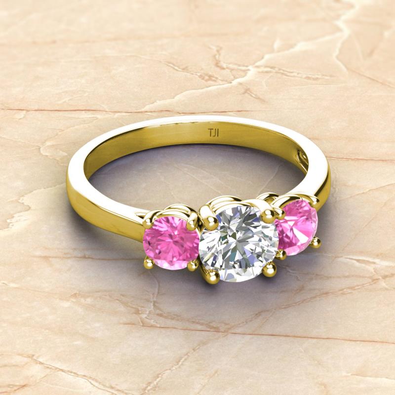 IGI Certified Round Lab Grown Diamond and Pink Sapphire 2.35 ctw Women Three Stone Engagement Ring 18K Yellow Gold More Details ...