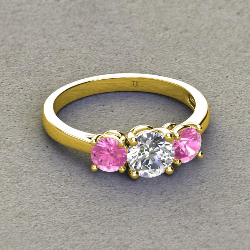 IGI Certified Round Lab Grown Diamond and Pink Sapphire 2.05 ctw Women Three Stone Engagement Ring 18K Yellow Gold More Details ...