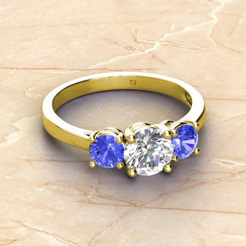 IGI Certified Round Lab Grown Diamond and Tanzanite 2.24 ctw Women Three Stone Engagement Ring 14K Yellow Gold More Details ...