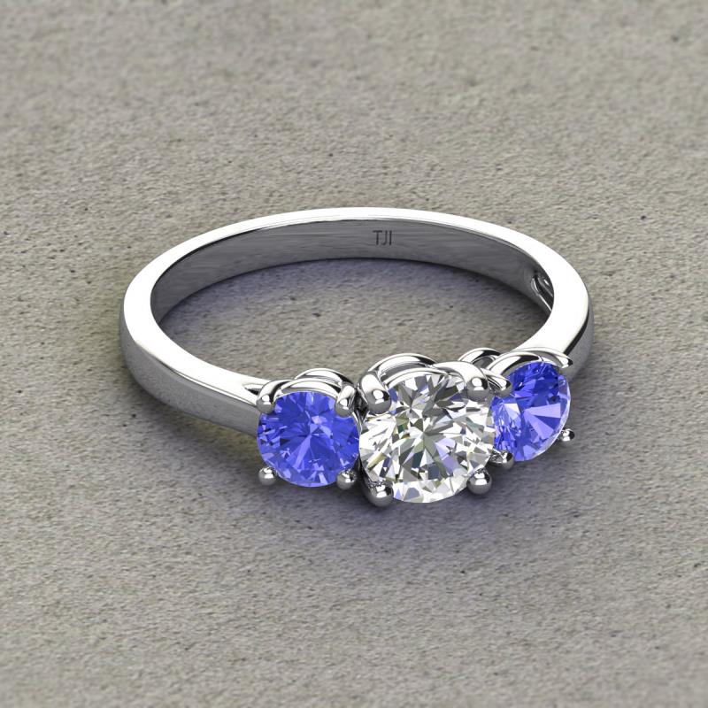 IGI Certified Round Lab Grown Diamond and Tanzanite 1.94 ctw Women Three Stone Engagement Ring 14K White Gold More Details ...
