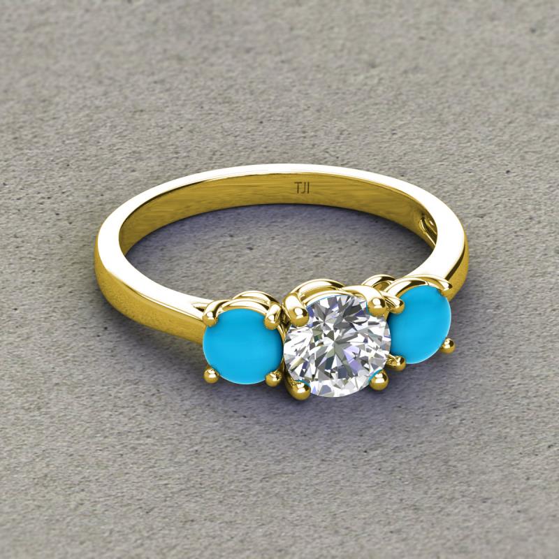 IGI Certified Round Lab Grown Diamond and Turquoise 1.72 ctw Women Three Stone Engagement Ring 18K Yellow Gold More Details ...
