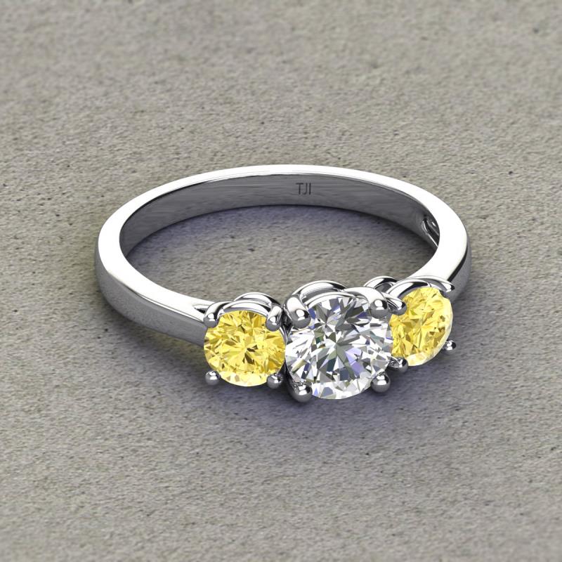 IGI Certified Round Lab Grown Diamond and Yellow Sapphire 2.06 ctw Women Three Stone Engagement Ring Platinum More Details ...
