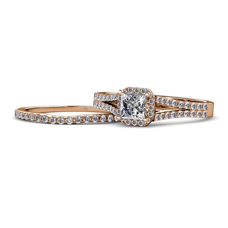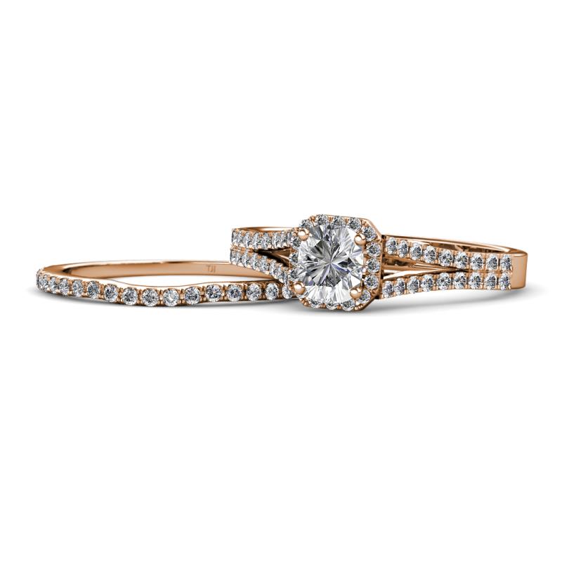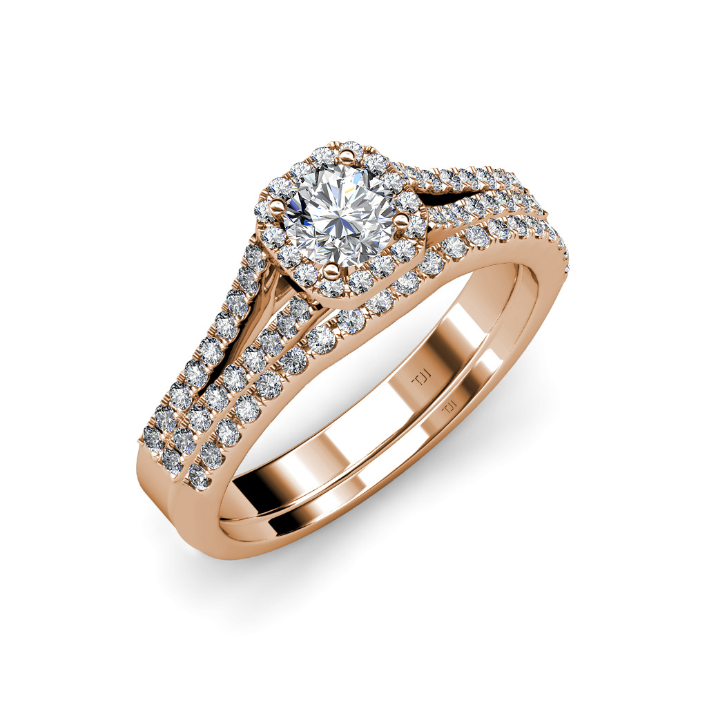 Diamond Semi Mount Halo Engagement Ring Setting & Matching Diamond Band 0.55 ctw 14K Rose Gold More Details ...