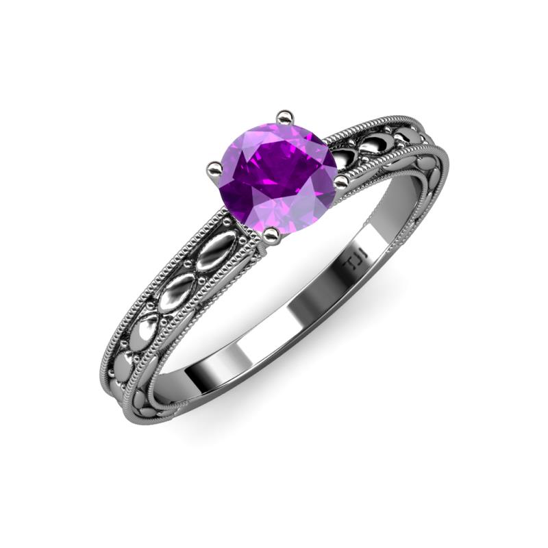 Round Amethyst Marquise Design Milgrain Womens Solitaire Engagement Ring 0.87 ct 18K White Gold More Details ...