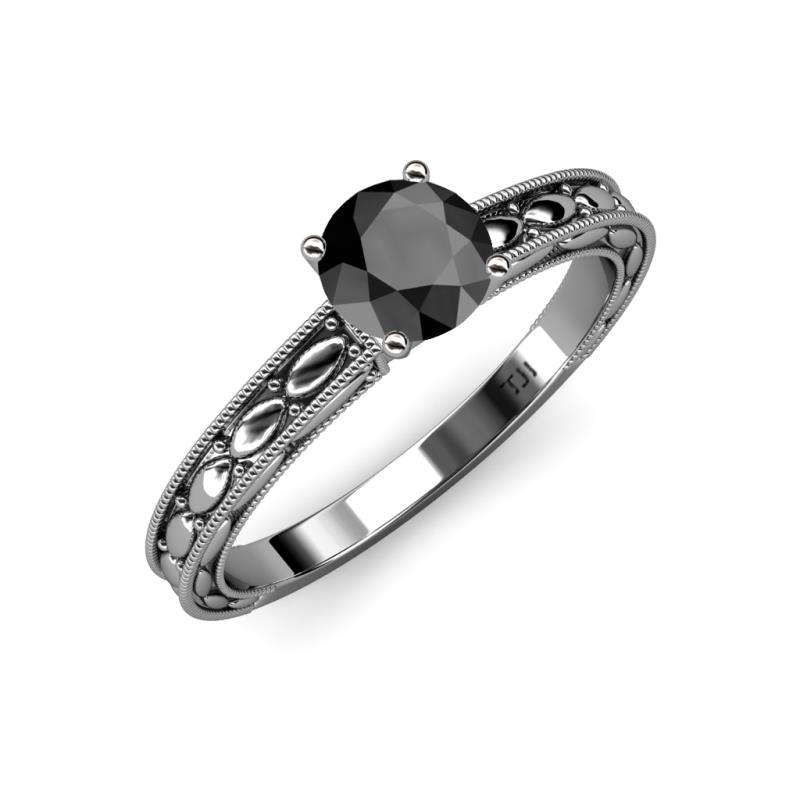 Round Black Diamond Marquise Design Milgrain Womens Solitaire Engagement Ring 1.00 ct 18K White Gold More Details ...