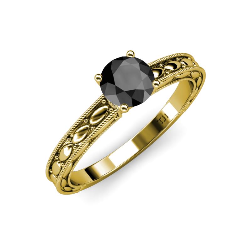 Round Black Diamond Marquise Design Milgrain Womens Solitaire Engagement Ring 1.00 ct 18K Yellow Gold More Details ...