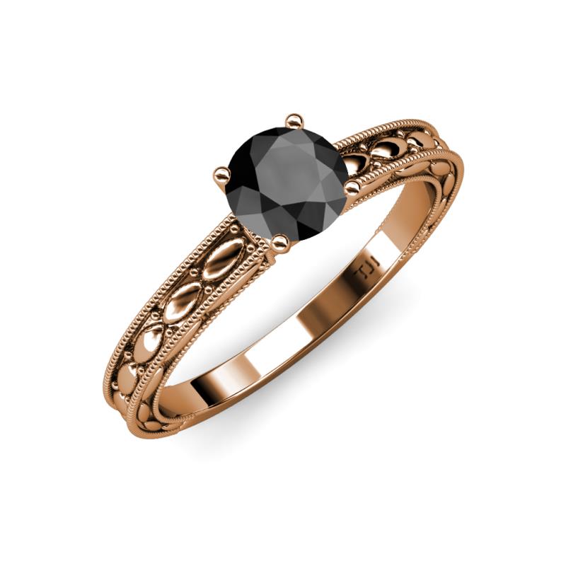 Round Black Diamond Marquise Design Milgrain Womens Solitaire Engagement Ring 1.00 ct 18K Rose Gold More Details ...