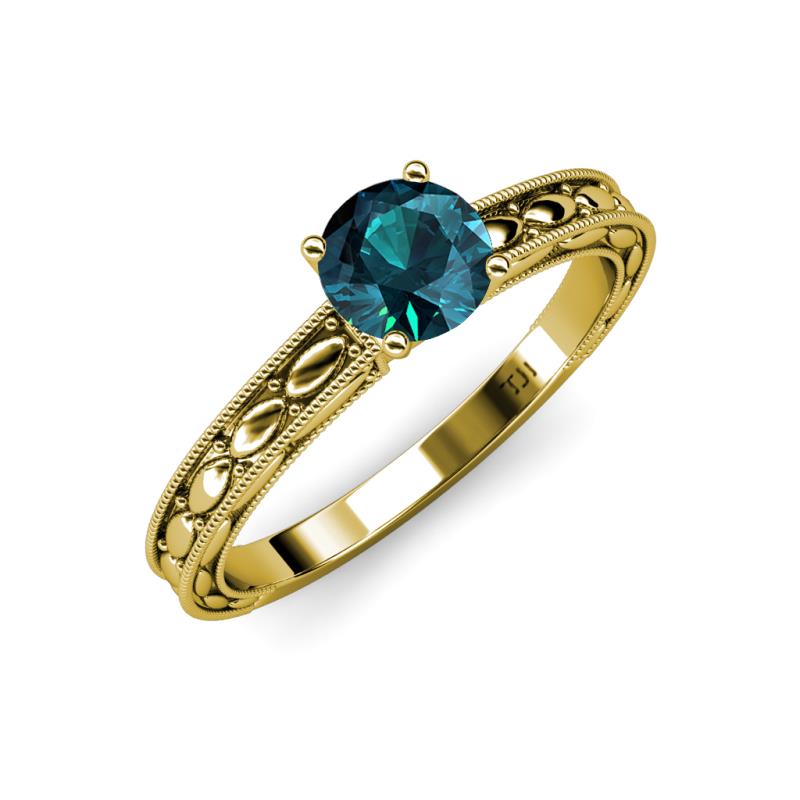 Round Blue Diamond Marquise Design Milgrain Womens Solitaire Engagement Ring 0.90 ct 18K Yellow Gold More Details ...