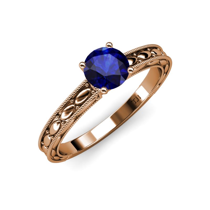 Round Blue Sapphire Marquise Design Milgrain Womens Solitaire Engagement Ring 0.96 ct 18K Rose Gold More Details ...
